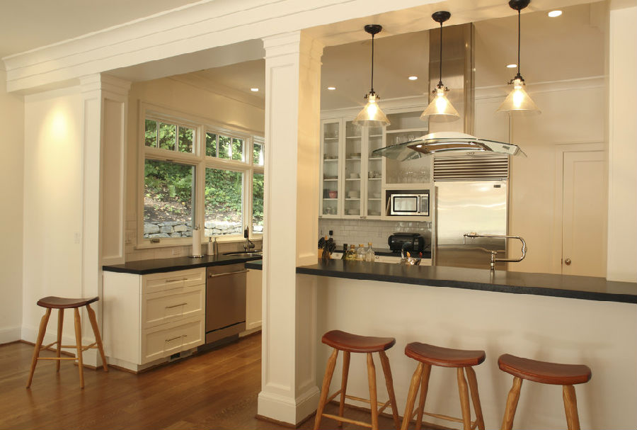 开放式厨房装修在广泛家庭中得以运用,特别是小户型的家庭,由于家居空间小,厨房又是一个单独的场所,而且油烟会蔓延到其它空间,厨房一般是封闭式带门窗的,阻止油烟扩散,可是随着时间的推移,开放式厨房装修受到越来越多的家庭推崇,不仅节省空间,而且可以增进家人的交流,增加了家人之间的感情,互动时间。